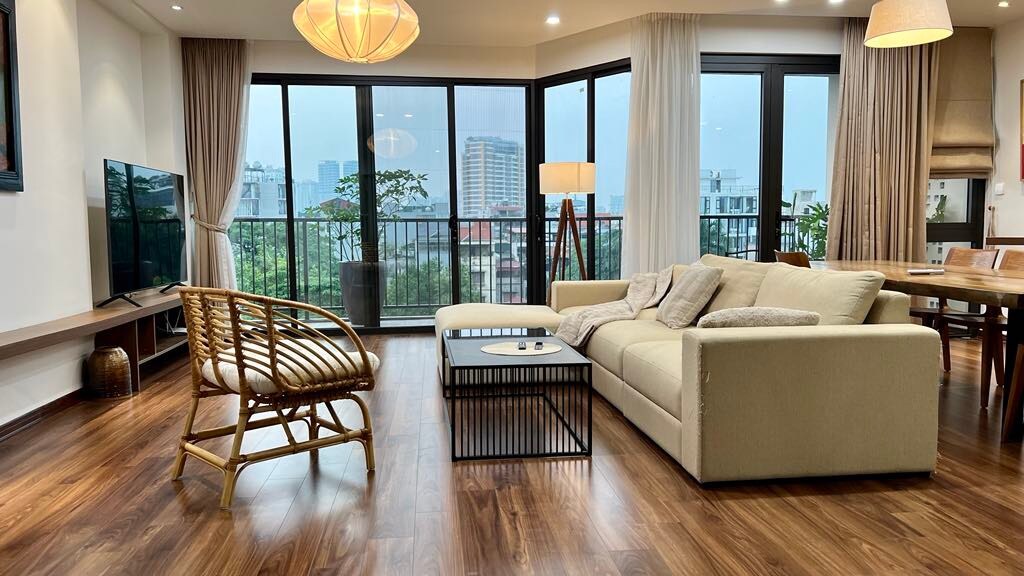 Desconecta de la rutina en este alojamiento único y relajante. Nuestro nuevo apartamento de 170 m2 con 3 dormitorios totalmente amueblado te ofrecerá un ambiente espacioso, tranquilo y sereno. A solo 2 minutos a pie de Westlake, puedes disfrutar de muchos restaurantes, cafeterías y vistas increíbles. Separado de la abarrotada ciudad de Hanói, nuestro edificio es una convergencia de arquitectura moderna y minimalista que te aportará resistencia, equilibrio y novedad.