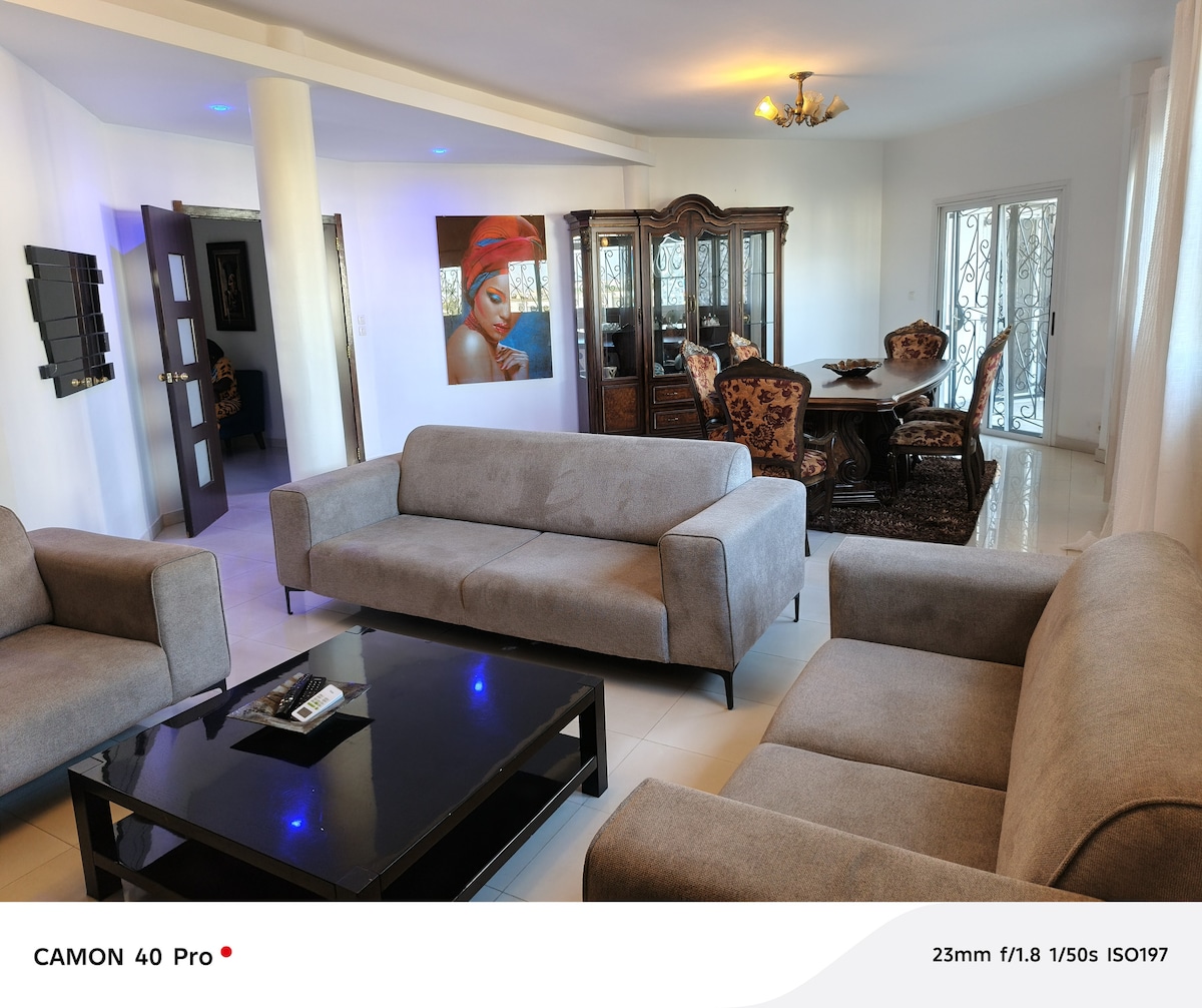 Alojamiento de 2 dormitorios, salón, 2 baños, cocina con internet de fibra, TV (Netflix, prima y todos los canales ). tranquilo y elegante situado en el barrio Point E en la calle A. Muy accesible, Supermercado, farmacia, restaurantes ...