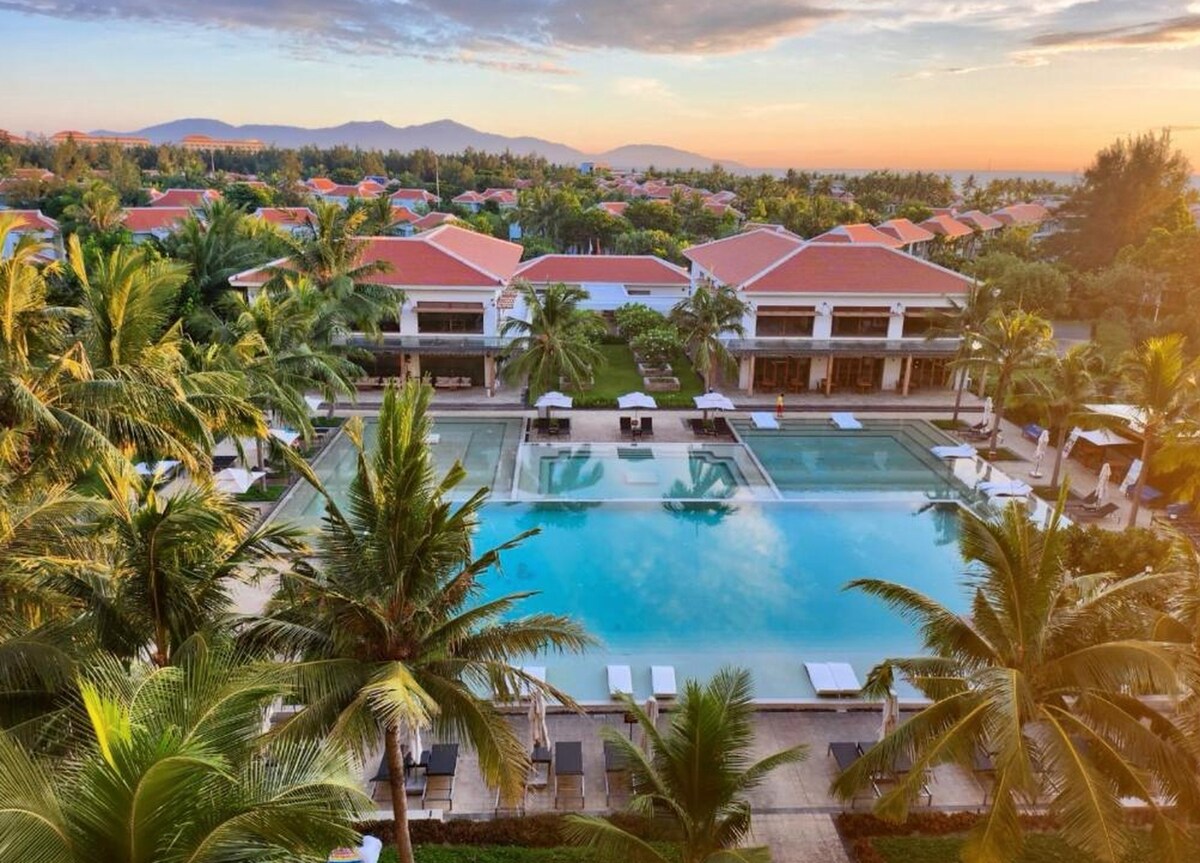 Ven a alojarte en nuestra casa privada, tranquila y de madera ubicada en el corazón del centro de la ciudad. Esta espaciosa villa está en la cadena del complejo turístico Furama con villas privadas de 5 estrellas, con clase, que ofrecen excelentes momentos. Donde está rodeado de exuberantes jardines y vegetación natural frente a la playa, para que tu familia o tus hijos tengan espacio para jugar. Este lugar único es perfecto para un grupo de amigos que viajan o una familia que buscan una estadía tranquila. Incluye bares, restaurantes y ver Netflix en la Smart TV.