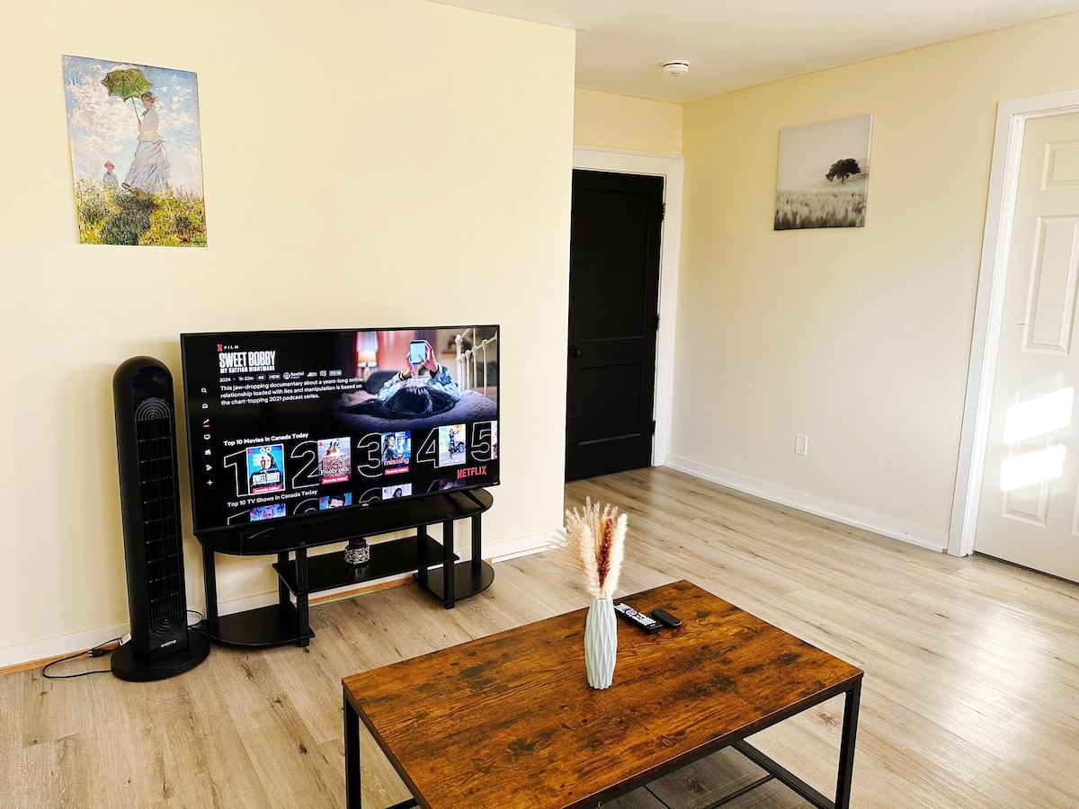 Cozy second floor suite in a quiet community, about a 5 to 10 minute drive or 30 minute walk from the Falls and Clifton Hill. Warm living room, simple kitchen, two queen bedrooms, 55 inche tv, 1.5gbps Wi-Fi and free on site parking make it an easy choice for families and friends. Central heating keep you comfy in every season. Pet friendly, relaxed vibe, quiet hours after midnight for guests who value a clean home base over a busy hotel. Ideal for road trips, long weekends and working visits.