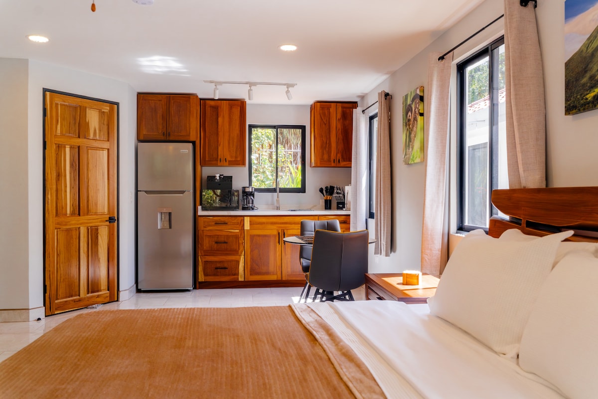 NAIA STUDIO flota en la selva de Santa Teresa, con vistas al valle verde y al océano Pacífico. A solo 3 minutos en coche de los restaurantes más populares y las hermosas playas de Santa Teresa. Comienza el día levantándote en la lujosa cama, con vistas a tu piscina privada frente al mar mientras escuchas los sonidos de la selva. Una casa de vacaciones perfecta para parejas o personas que viajan solas.