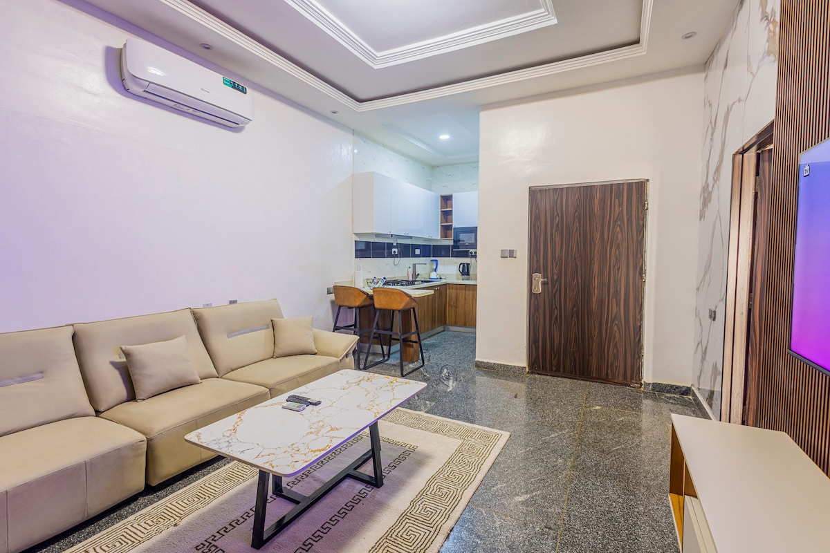 Disfruta de un moderno apartamento de 3 dormitorios con todo lo que necesitas para una estancia cómoda. Esta espaciosa casa cuenta con wifi, electricidad 24/7, agua corriente limpia y cuatro aseos privados, ofreciendo comodidad y privacidad para grupos o familias. Ubicado en un barrio privilegiado y de fácil acceso, disfrutarás de un acceso rápido a restaurantes, tiendas y atracciones clave de la ciudad, por lo que es perfecto tanto para estancias cortas como largas.