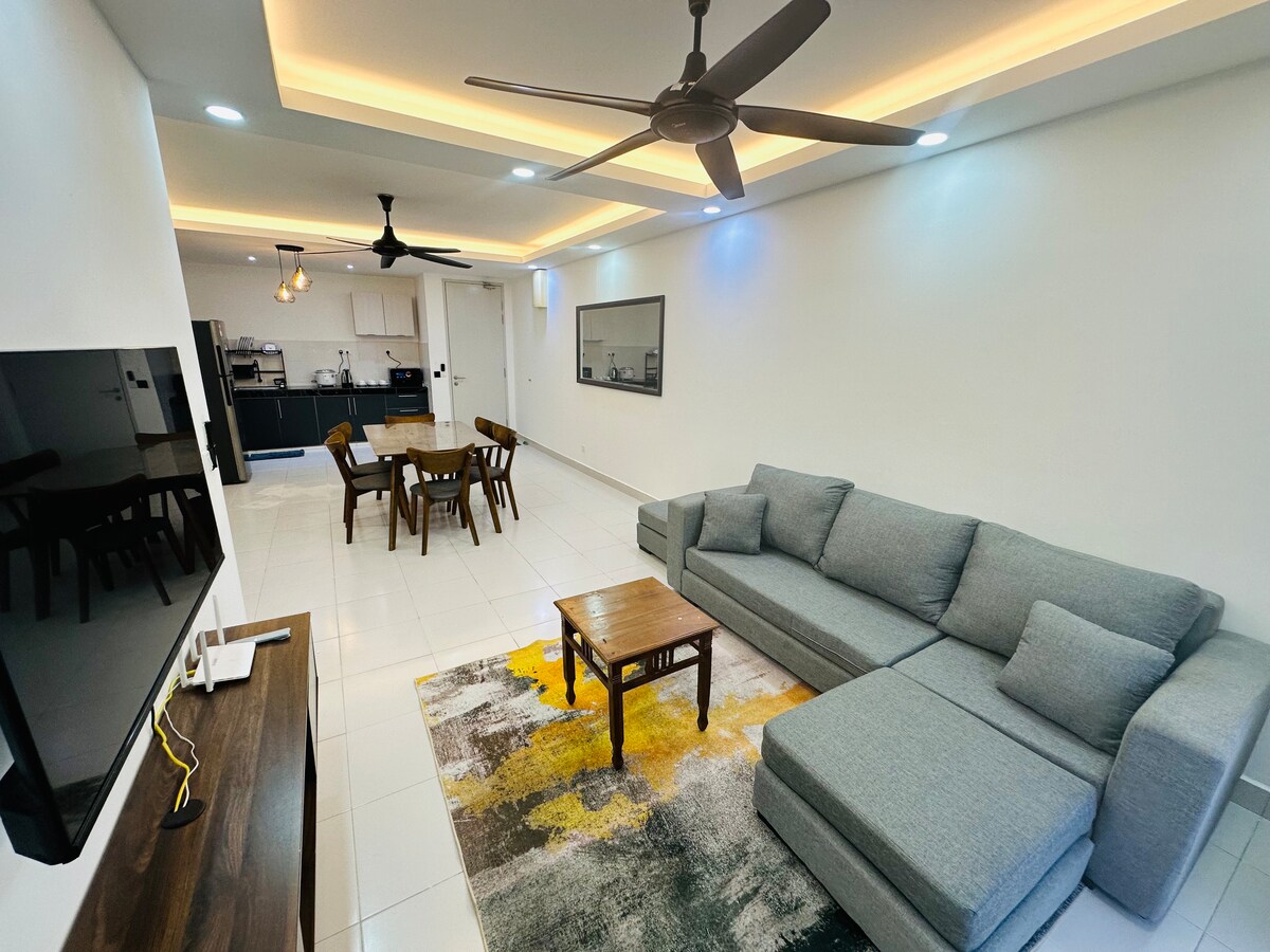 Twenty2 Home at Mirai Residence is a cozy, quiet, family-friendly stay with 2 bedrooms and 1 bathroom, accommodating up to 4 guests including children. Strategically located in Kajang and Bandar Baru Bangi, just minutes from LRT, KTM Komuter, UKM, and GMI, it offers green spaces, a mini water park for kids, full modern facilities for adults, free WiFi, Netflix, and a BBQ grill (RM50/night).