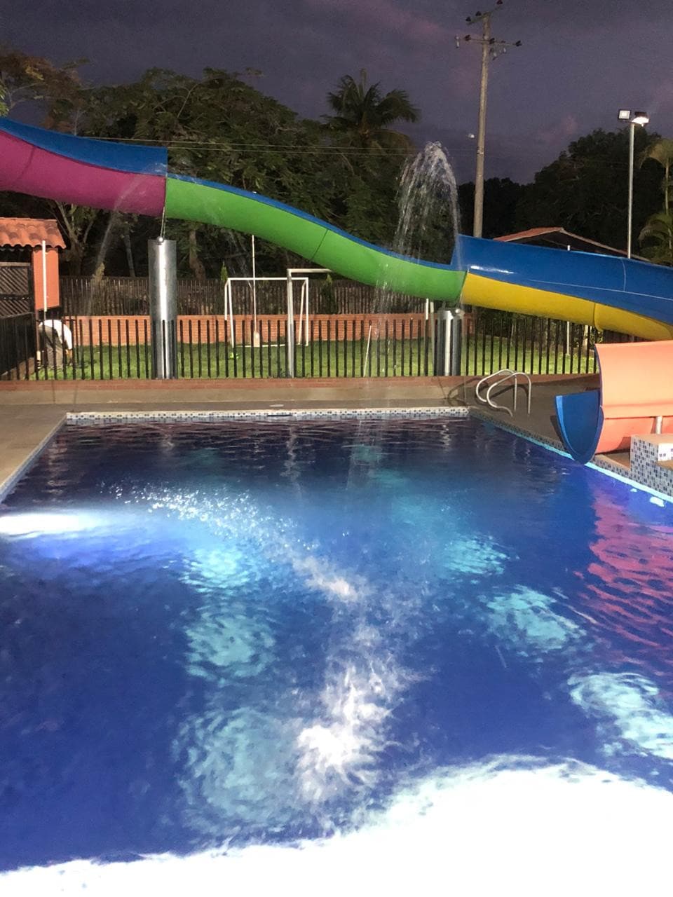 Capacidad para 14 personas (Para algunas más, tenemos disponibilidad de colchonetas). Ubicada a 4 km (10 minutos aprox) de Carmen de Apicalá. 4 habitaciones, 4 baños, sala, comedor, cocina equipada, 2 neveras, salón de juegos con mesa de ping pong, boli rana y juegos de mesa, sonido con karaoke y tv, parqueadero para 4 automoviles; piscina privada con jacuzzi y luz interior, BBQ cubierto, tablero de baloncesto y cancha de tejo. NO SE HACEN CAMBIOS EN LA FECHA DE RESERVA.