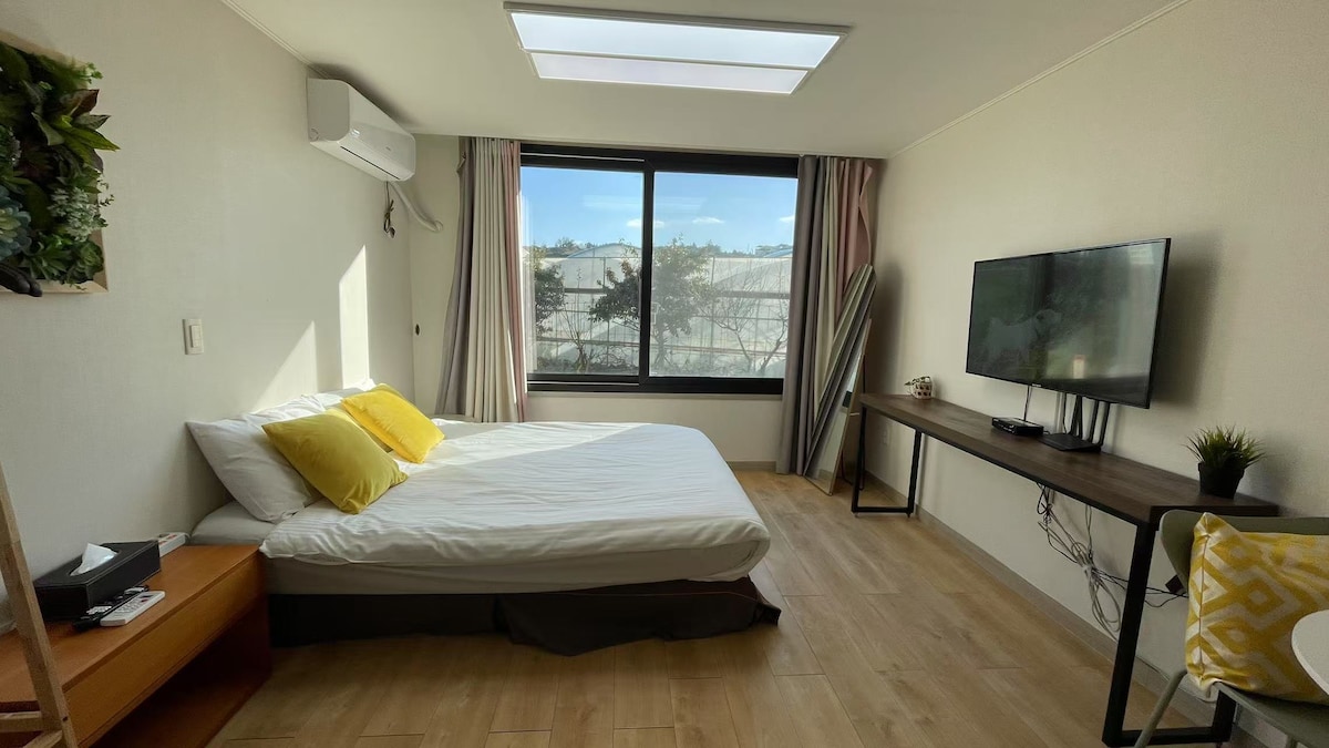 Room is for single traveler though, 2pp can stay with extra charge Clean Linen and towels, Wi-Fi(in the room), TV, Free Parking lot, Private bathroom, Refrigerator, Microwave, Shampoo&cleanser, (No toothbrush) Hair dryer - Available to leave the luggage before check-in or after check-out - 300m to Bus stop(Naedodong-dong) - 15min from airport (taxi costs 8~9000won) - Direct bus 315 or 316 from Airport takes over 30min - 10min walk to Iho beach - Local grocery store near Bus stop