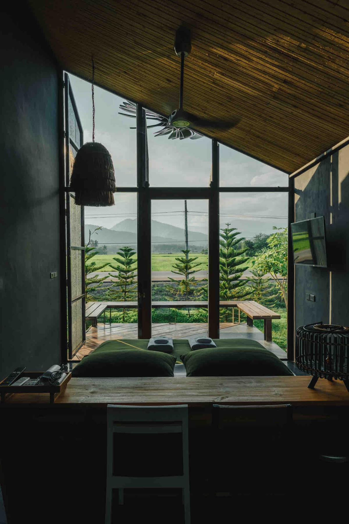 ที่นี่เป็นบ้านพักสไตล์ไม้เก่ารีโนเวทใหม่ ที่ยังเก็บรายละเอียดเสน่ห์เดิมๆ ไว้ครบ แต่เติมความโมเดิร์นแบบอบอุ่นเข้าเหมาะกับคนที่อยากมาพักผ่อนท่ามกลางธรรมชาติจริงๆ เปิดหน้าต่างมาก็เจอ วิวภูเขาหินปูนยักษ์ ตระหง่านอยู่ตรงหน้า เหมือนภาพวาดจากธรรมชาติ นอนบนเตียงนุ่มๆ แล้วมองวิวได้เลย ไม่ต้องขยับไปไหน อากาศดีทั้งเช้าและเย็น บางช่วงมีค้างคาวบินผ่านตรงกระจกบานใหญ่เลย