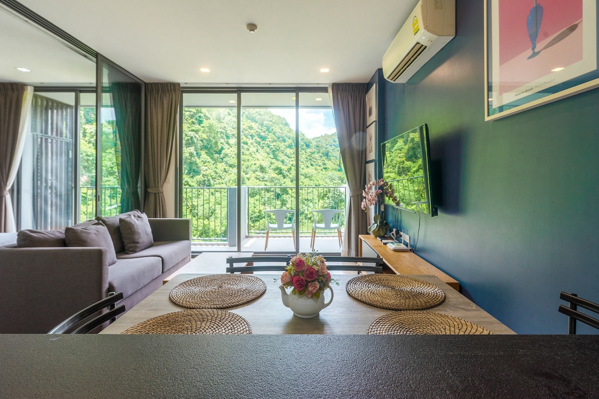 Alojamiento tranquilo con vistas a la montaña. Ambiente tranquilo. Esta unidad viene con: - Cama tamaño king. - Un sofá cama. - Televisor inteligente de 55 pulgadas. - Wifi gratuito - Cocina totalmente equipada. Las instalaciones del edificio incluyen: - Piscina con vista panorámica a Khaoyai. - Fitness. - Lavadero - Hermoso jardín.