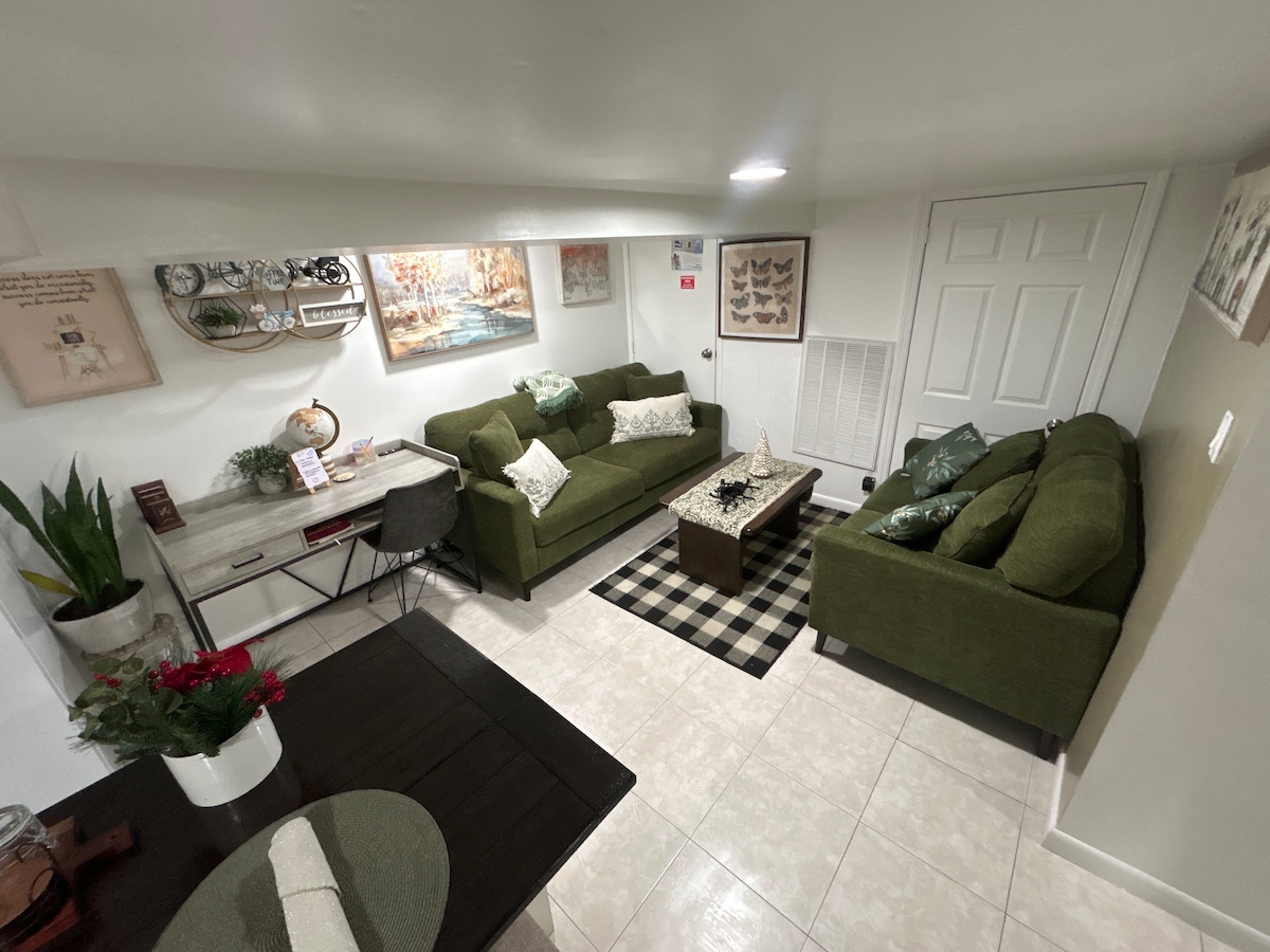 Its coziness will make you feel at home the second you step in. This cute ground floor 280 sq ft Tiny Guest Suite is Fully furnished and nicely decorated - it comes with anything you can possibly imagine. It consist of 1 bedroom 1 bathroom & a kitchen/dining/living room area Rooms' sizes: Bedroom: 10ft x 7 1/2ft LR kitchen DR area: 19ft x 10ft Bath: 40" x 80" Given how close it is from everything - It is perfect for guests who plan on commuting to the city by train or move around by Uber.