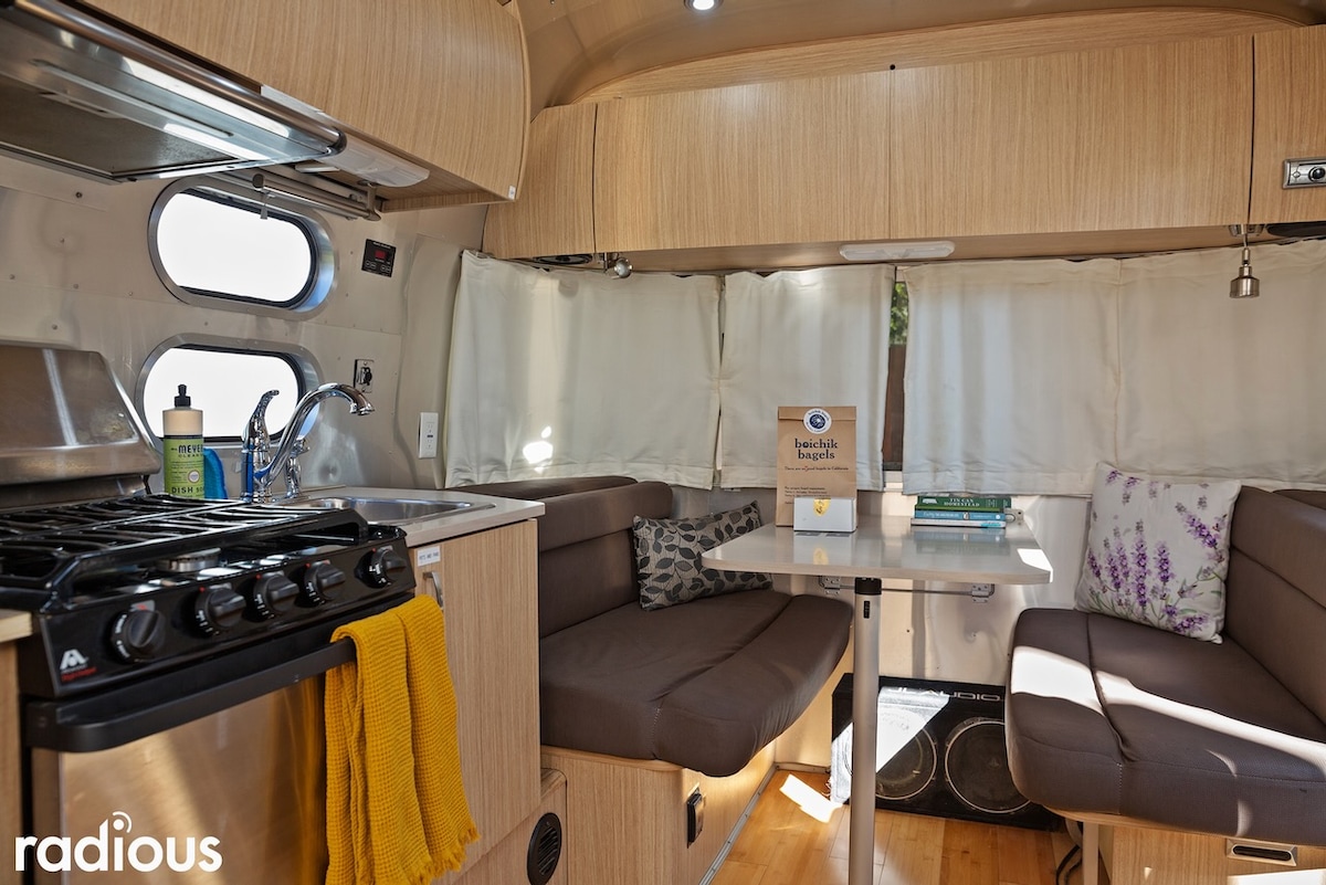 Una experiencia única en Airbnb. Relájate en un icónico remolque Airstream de 22 pies con una cocina totalmente equipada, comedor, baño separado, ducha separada, zona de dormitorio con cama tamaño queen. TV inteligente de 25 pulgadas, así como reproductor de DVD y sistema de sonido de radio. Ofrecemos cubiertos, platos, utensilios de cocina, ollas, sartenes, Kerig de una sola porción, tostadora... casi todo lo necesario para que te sientas como en casa lejos de casa. Relájate y duerme en uno de los colchones más cómodos. Despiértate con vistas panorámicas a la bahía y al horizonte de la ciudad.
