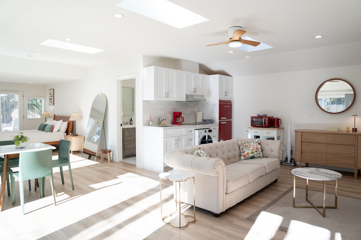 Descubre una escapada de diseño de 2 dormitorios/1 baño, 750 pies cuadrados donde el estilo se encuentra con la sostenibilidad. Cada rincón está diseñado intencionadamente con suelos de hormigón pulido, gres artesanal, cálidas lámparas de sal y elementos esenciales ecológicos. El espacio es luminoso, abierto y elevado, y está equipado con todo lo necesario para que tu estancia sea cómoda. Un centro perfecto para profesionales que viajan o familias que desean explorar las playas de Malibú y los lugares destacados de Los Ángeles, mientras disfrutan de más espacio y valor fuera de la ciudad.