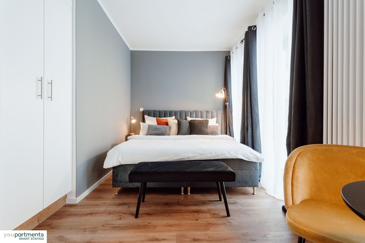 ¡Microapartamentos en un oasis cerca de la ciudad! Este edificio de apartamentos boutique ofrece 6 apartamentos dobles individuales totalmente equipados en la entreplanta y en la primera planta, cada uno con dormitorio, baño y cocina. Un estudio ofrece espacio para 2 personas cada uno, y hasta un total de 12 personas en 6 apartamentos. A poca distancia a pie de la estación de tren, el centro de la ciudad, el puerto y el centro de exposiciones/congresos. El patio interior es de uso común para todos los huéspedes y te invita a relajarte.