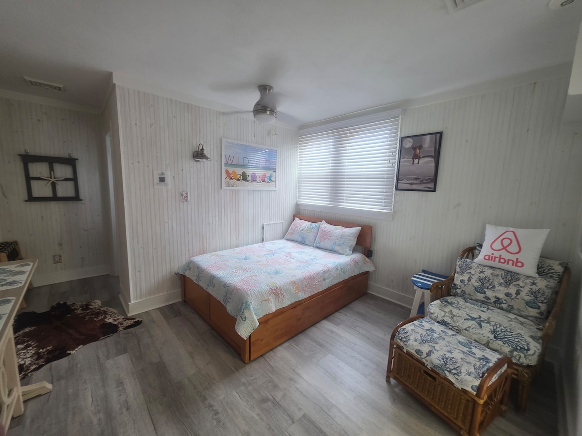 Moderna, esta espaciosa unidad tiene capacidad para 6 personas y está totalmente equipada con una cocina equipada. Con un salón/comedor abierto, es perfecto para preparar comidas grandes y disfrutar del tiempo con todo tu grupo. Sal al patio trasero para disfrutar de una bebida con el aire de la playa. Tu comodidad también está asegurada con aire acondicionado central, lavadora y secadora privadas, Internet wifi de alta velocidad y TV. ¡Inicia sesión en Amazon o Netflix y sueña todo el día!