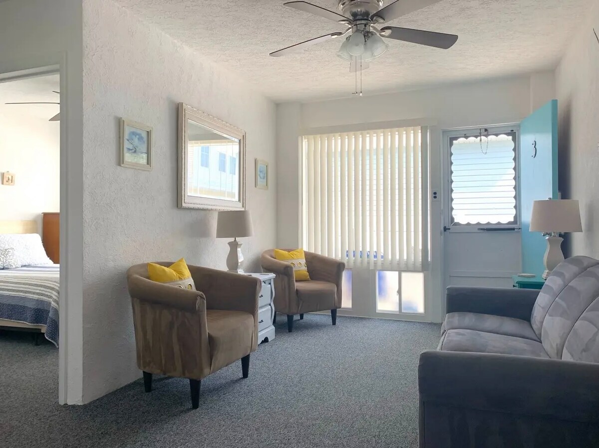 LA PLAYA es más grande que nunca. ALQUILERES EN TEMPORADA ALTA: 5 NOCHES MÍN. ALQUILERES FUERA DE TEMPORADA: 2 NOCHES MÍN. El estudio es eficiente con nevera, fogones, cafetera, tostadora. Capacidad para 4 personas. 1 cama, 1 cama, ambas camas tamaño queen. LOS HUÉSPEDES TRAEN SUS PROPIAS TOALLAS, SÁBANAS, ETC. Servicios de aire acondicionado, monedas op. w/d, seguridad, 1 auto + estacionamiento fuera de la calle. $ 200 POR PASE DE ESTACIONAMIENTO PERDIDO La seguridad de RTC requiere que los huéspedes proporcionen la dirección de su casa y los nombres de los huéspedes