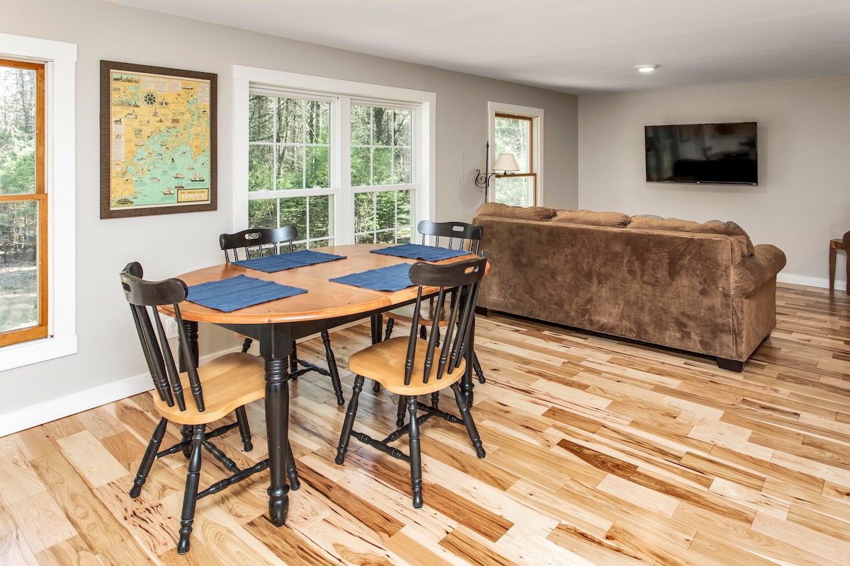 ¡Recientemente amueblado y renovado! Wifi rápido, televisores inteligentes, patio trasero espacioso con fogata, terraza trasera con parrilla y muebles de exterior. Gran comedor, sala de estar, cocina y porche delantero cubierto. Perfecto para relajarse con amigos y familiares, donde te sentirás como si estuvieras lejos de todo, pero a solo 5 minutos de las animadas tiendas, restaurantes, cervecerías y LLBean del centro de Freeport. ¡Hermosos senderos para caminar, bosques y el Parque Estatal Bradbury están cerca y el pintoresco Puerto Viejo de Portland está a solo 20 minutos!