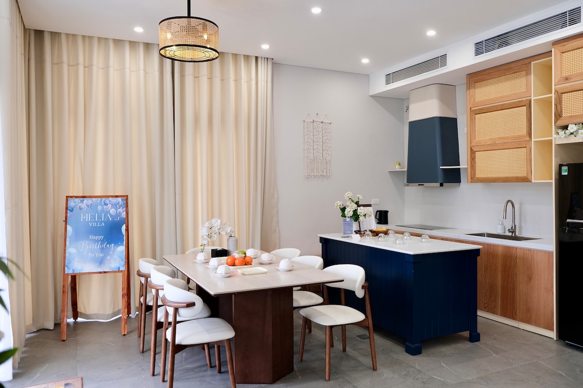 Special – 50% OFF promo for beach getaway 🌊 Welcome to Hélia Villa Trà Cổ, a cozy tropical villa in modern coastal style. Located at the longest beach of VietNam, Trà . 10 mins to Vĩnh Thuận Golf & Móng Cái city center. Spacious living room, full kitchen & private garden BBQ area. Two bedrooms (Standard 18m², Master 26m²) – perfect for families or small groups. Sea-view lounge 🌅 Full service for your stay: breakfast on request, local tour & visa support.