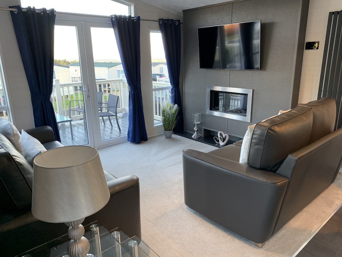 Welcome to View Point Lodge, enjoy the peaceful surroundings whilst taking in stunning views of the Northumberland countryside. A modern, new lodge with an open plan living area and full kitchen amenities, smart tv and free wifi. Outside seating area overlooking the Simonside Hills, free parking on site. Children's play ground and tennis courts on site. Also there is a bar located in the Golf club on site which also serves food, along with a convenience store.