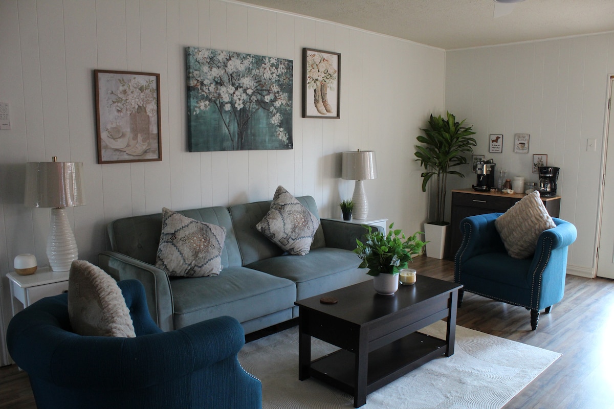 Tiny House on the Prairie está esperando para incluirte a ti y a tu huésped en esta pintoresca escapada de la ciudad. Acurrúquese como un bicho en una alfombra en la cama tamaño King ubicada en el loft. Despiértate con vistas a los caballos y vacas que pastan. Observa el amanecer desde el porche. Esta pequeña casa se encuentra en un rancho de trabajo de 205 acres y establos de equitación. Disfruta viviendo entre la manada o aventúrate a la ciudad vieja de Katy, a unos 20 minutos al sur. Hay bonitas tiendas de antigüedades y algunos restaurantes familiares. Mascotas Sí
