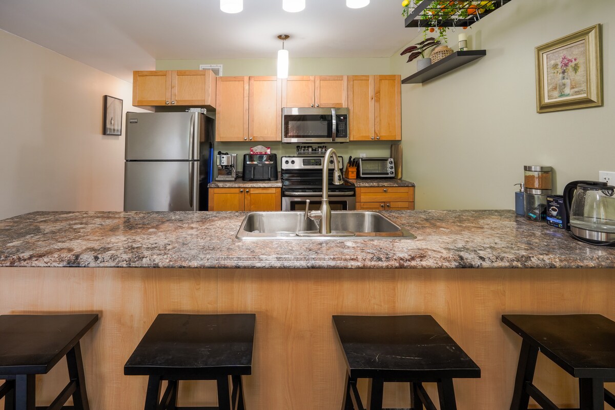 Amplia casa adosada de lujo nueva a pocos pasos de todos los servicios: a media manzana de tiendas de comestibles y gas. A 2 manzanas de restaurantes, bares y tiendas. A 5 minutos del centro de la ciudad. SPA de lujo con jacuzzi y sauna, sillón de masaje de cuerpo entero, 2 amplios dormitorios en suite y 3 baños completos con jacuzzi. 2 salones, cocina grande, 2 balcones, barbacoa, cocina completa, 2 chimeneas interiores, patio trasero grande, 6 televisores inteligentes, uno en cada sala de estar, ¡incluida la sala del SPA!