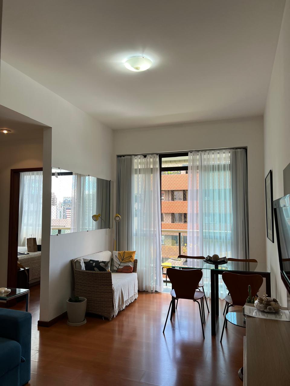 Este es un lugar único completo para su estadía, en el barrio de los funcionarios, a dos cuadras de la plaza de la libertad y de savassi, se encuentra en un edificio discreto, sin portero físico, de uso mixto tanto comercial como residencial, con 50m2. Con las comodidades de un mini GYM, despensa, escritorio, también equipado con lavadora, un baño completo y otro lavabo. Varias comodidades alrededor como estacionamiento, supermercados, panadería, farmacia, bares y restaurante.