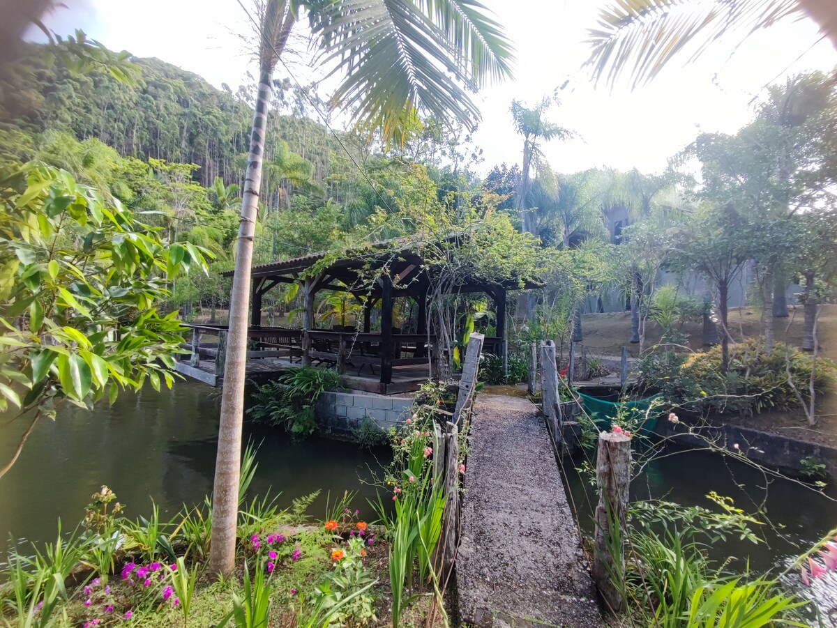 Bienvenido a Nova Trento (SC), la capital del turismo religioso en Santa Catarina y la tierra de Santa Paulina, la primera santa de Brasil. Aquí también se encuentra Morro da Cruz, un encantador mirador con vistas al valle y a las montañas. Nuestra granja está a solo 3 km del centro de la ciudad, cerca de las principales atracciones turísticas. Un refugio tranquilo para descansar, relajarse, pescar y escuchar el canto de los pájaros. Conecta con la naturaleza, respira aire fresco y disfruta de momentos de paz en un entorno acogedor y encantador.