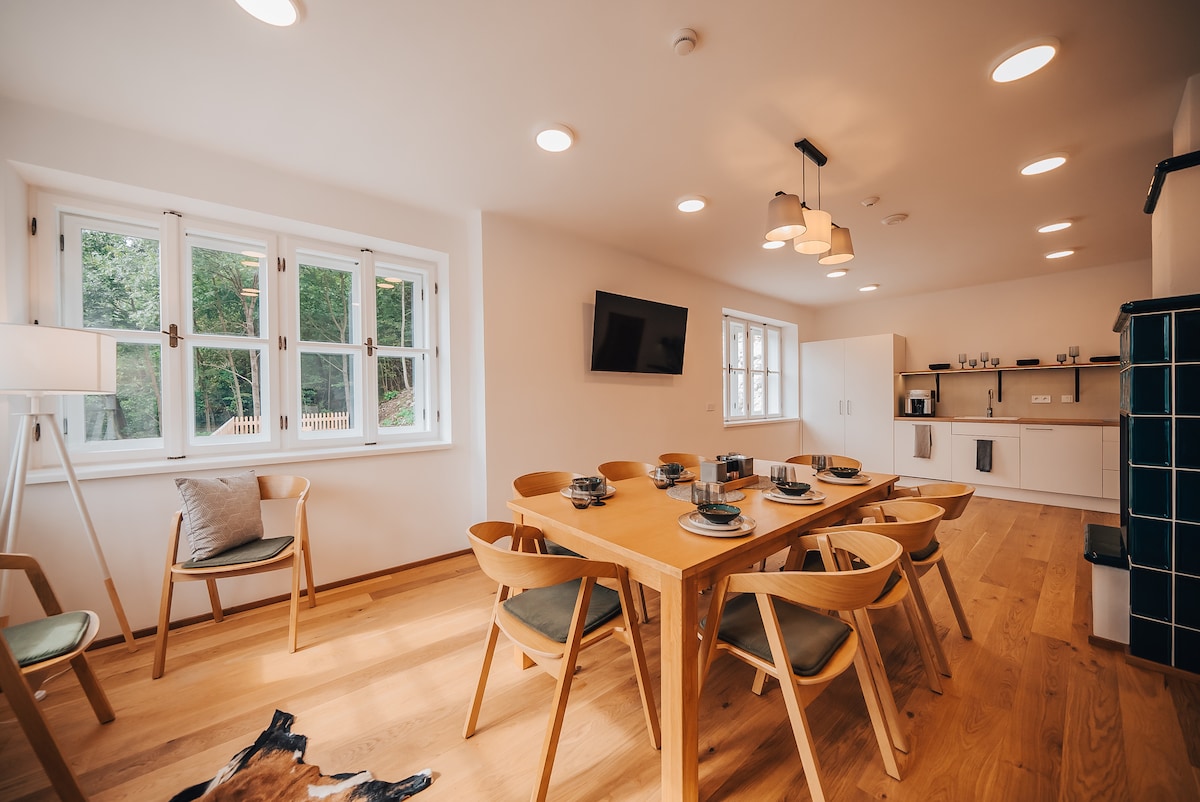Pase unos días en un mundo que usted pensaba que ya había desaparecido. Nuestra casa es ideal tanto para familias con niños o parejas, como para personas que buscan tranquilidad y concentración para su trabajo. La casa combina un interior histórico auténtico con la comodidad de los estándares actuales. En la casa encontrará una cocina bien equipada con todo lo necesario para cocinar, dos habitaciones grandes y una pequeña. Puede utilizar el patio privado cerrado y el jardín con arroyo.