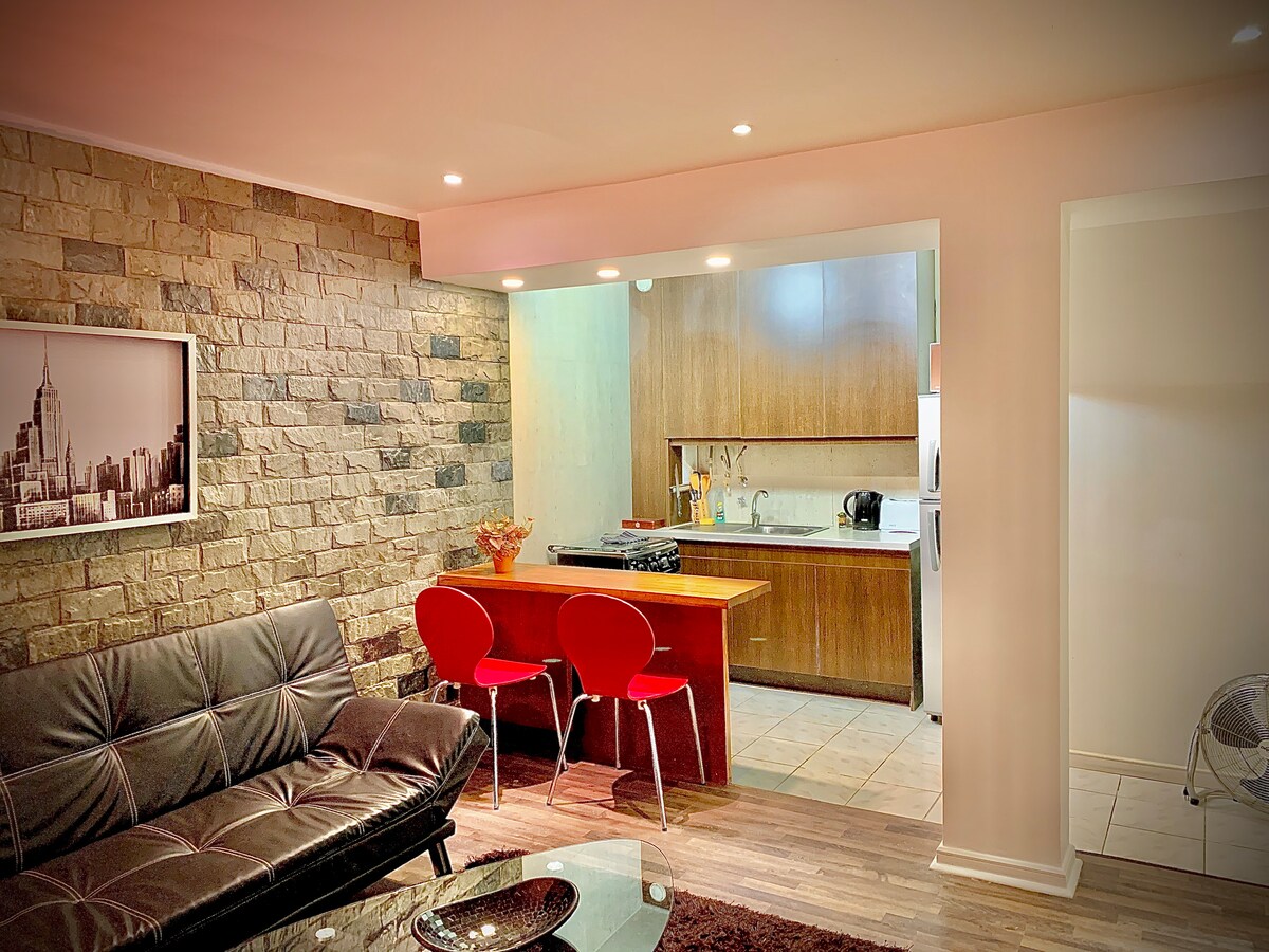 Nuestros apartamentos de un dormitorio son apropiados para uno o dos huéspedes y cuentan con cama 2 plazas, sala, cocina de concepto abierto equipada, baño en suite. Con Aire Acondicionado. Las unidades están totalmente equipadas, tienen camas vestidas, toallas, implementos de cocina, y todo lo necesario, e incluyen Aire Acondicionado, internet Wi-Fi , Cable, Smart TV Samsung de 43” Para que disfrutes de tus series en streaming, cuenta de Youtube Premium instalada. Estacionamiento incluido.