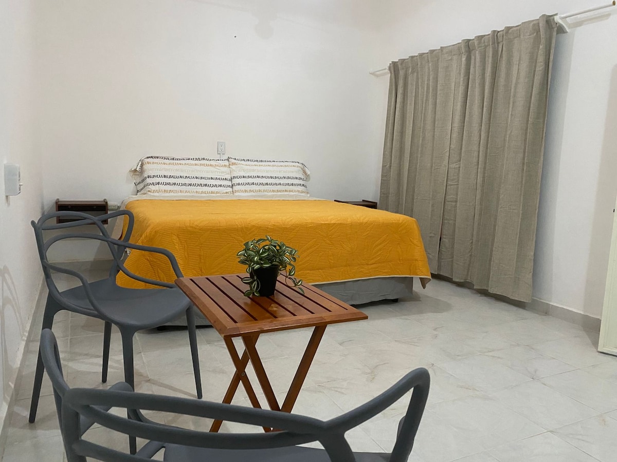 Departamento estilo vintage-rústico en una casa de más de 200 años de antigüedad que da a la calle en un lugar excelente a dos cuadras de la Plaza Central. Inmerso en el ambiente de la Ciudad, acondicionado para estar independiente y cómodamente, lo más conveniente de mi espacio es que está en el centro, puede que no sea el lugar ideal si solo quieres escuchar el sonido del campo. Ofrecemos elementos para desayunar como fruta, pan tostado, mermelada, mantequilla, leche y jugo.
