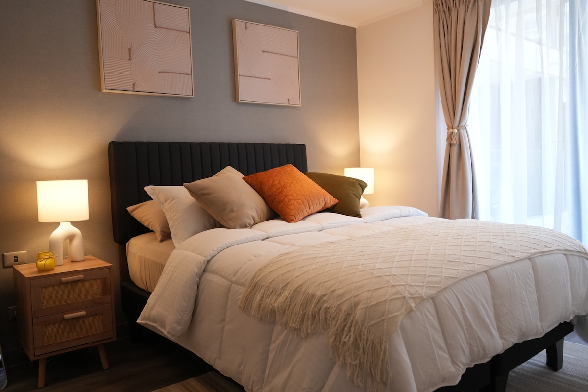 Sorpréndete y déjate cautivar por este moderno departamento en el corazón de Ñuñoa, con ubicación privilegiada, a pasos de centros comerciales, principales avenidas y Metro L3. Con un diseño elegante y detallista, ofrece un amplio dormitorio, balcón privado y todo lo necesario para una estadía cómoda e inolvidable. Full equipado, con WiFi, Smart TV y espacios pensados para tu descanso. Vive la experiencia de un hogar nuevo, moderno y lleno de vitalidad.