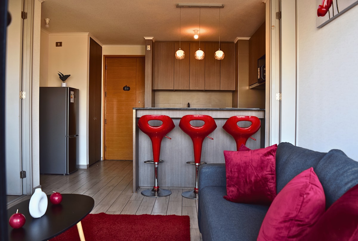 Disfruta de nuestro moderno alojamiento, tranquilo y céntrico con orientación norte, muy bien conectado a un paso de estación de metro Ñuñoa, supermercado , bancos y comercio en general, cercano a la bohemia de plaza Ñuñoa, Estadio Nacional y restaurantes con toda la onda del barrio. Si te gusta la cocina este es tu lugar, hemos pensado en una cocina integrada a los espacios con equipamiento cómodo y moderno. Incluye estacionamiento subterráneo en el edificio.