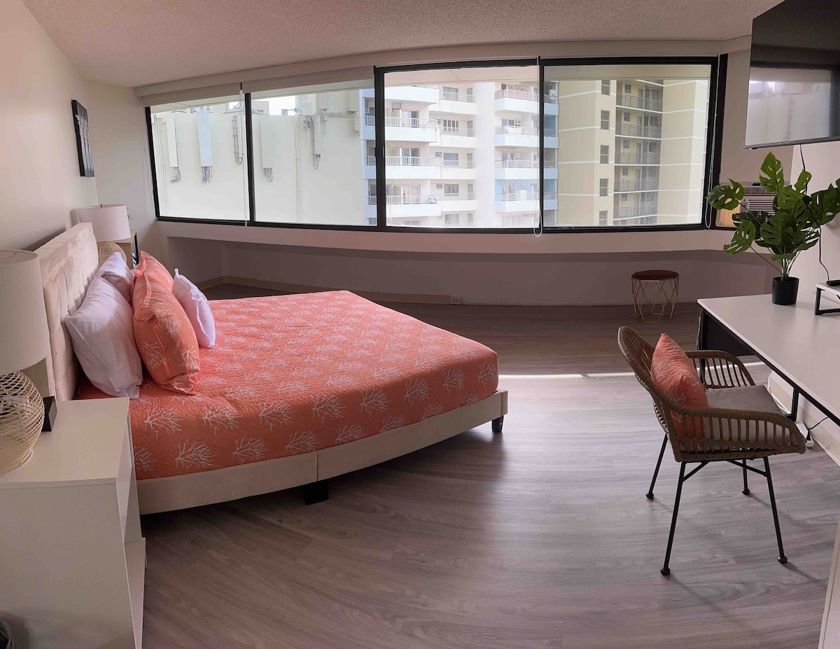 Our 3 stylish units offers a fresh ambiance with updated furniture, blackout shades, comfy beds, premium linens, a smart TV, and high-speed WiFi. Nestled in the heart of Waikiki, it's conveniently close to Ala Moana Shopping Center and a mere 5-minute stroll to Waikiki and Ala Moana beaches. Take advantage of amenities like the pool, hot tub, and tennis courts during your stay.