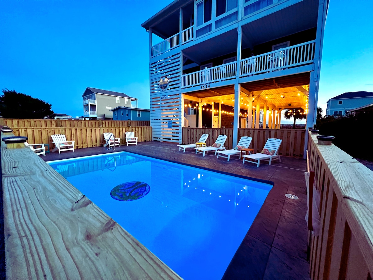 ¡BIENVENIDO a la casa de playa OASIS! ¿Listo para las mejores vacaciones? El Oasis cuenta con una piscina de agua salada de tamaño completo, chimenea, bar tiki, parrilla y TV al aire libre. ¡Esta belleza del patio trasero tiene todo lo que podrías desear! Ubicado a solo 7 manzanas del mar en Carolina Beach, pasa los días en la arena y las noches bajo las luces de cuerda alrededor de la piscina, el bar o la chimenea. Nuevo anuncio con hermosos muebles. Piscina climatizada durante la temporada media bajo petición con cargo adicional.