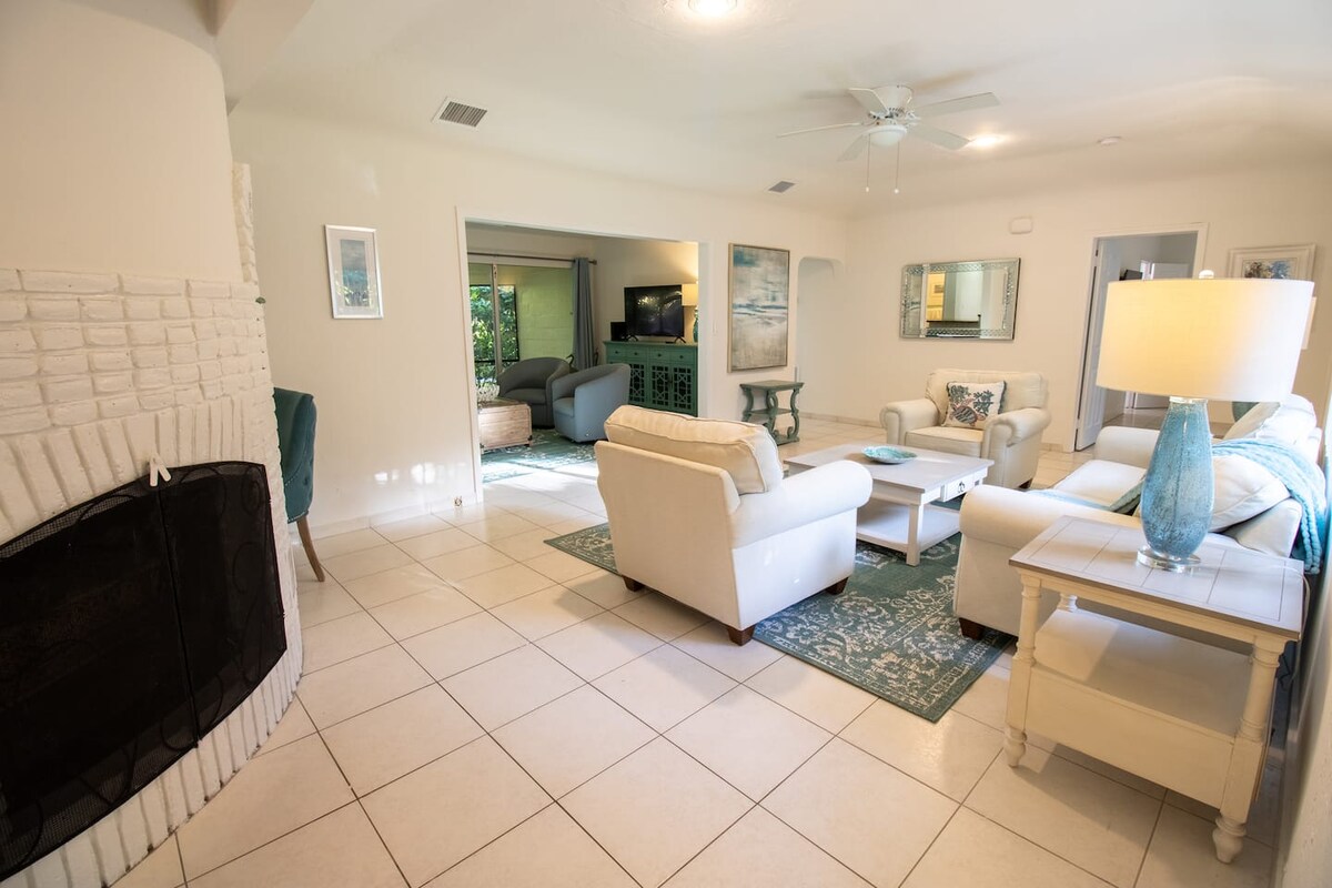 Escápate a este lujoso refugio costero en una exclusiva comunidad cerrada, a pocos pasos de la Intracoastal y a minutos de la playa. Los techos abovedados, la luz natural y una acogedora chimenea crean un ambiente ideal para relajarse. Disfruta de una mesa de billar, seis televisores inteligentes con streaming, wifi de alta velocidad y estacionamiento para más de 5 coches. Camina hasta el centro comercial Galleria, los mejores restaurantes y cafeterías. La mezcla perfecta de comodidad, estilo y ubicación para tu estancia en Fort Lauderdale.