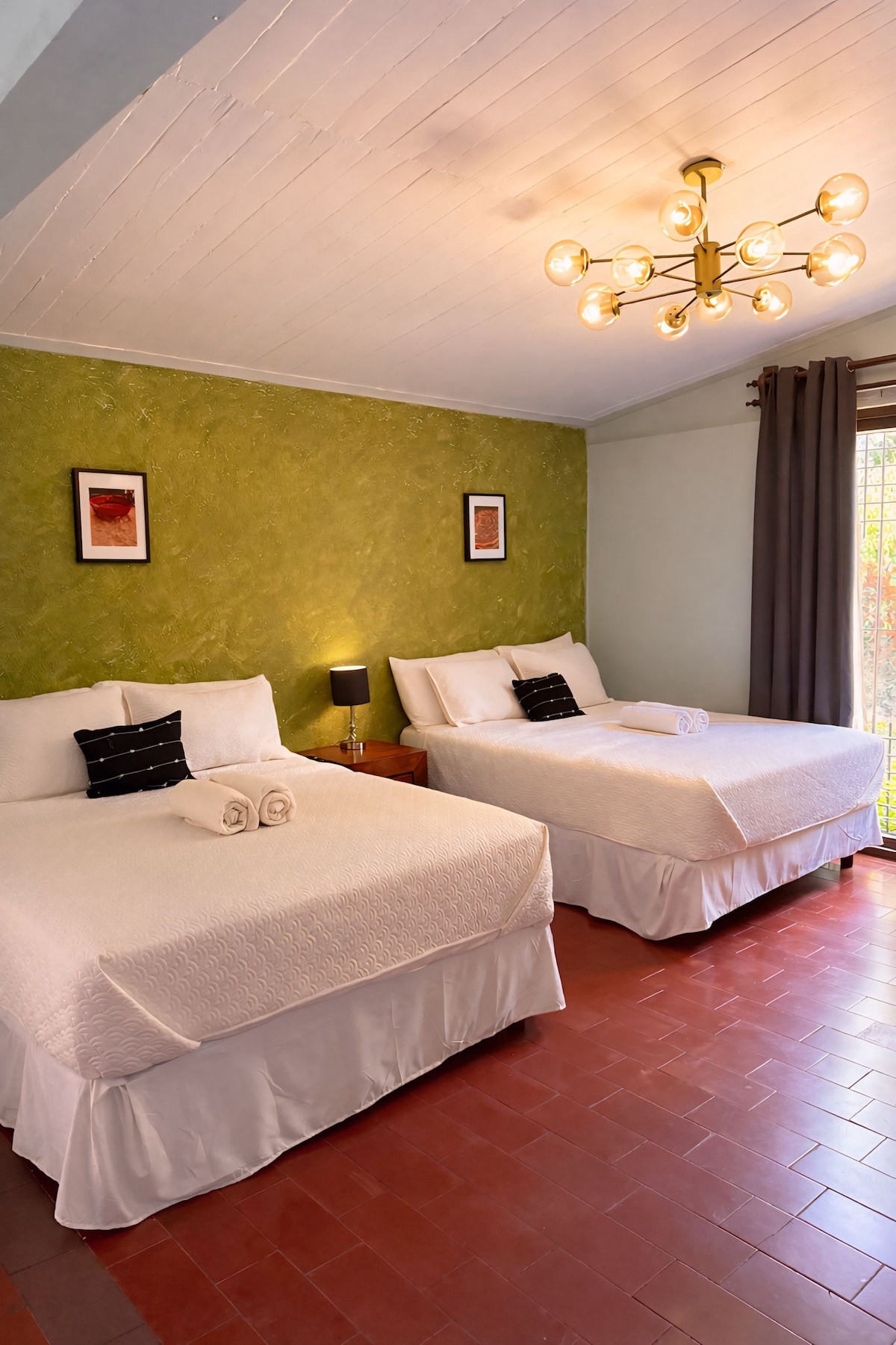 Esta magnífica casa está dividida en dos áreas: la casa principal alberga 3 habitaciones y un segundo edificio tiene 2 habitaciones adicionales. Se puede configurar otro espacio en esta segunda casa para los huéspedes que requieran un dormitorio a nivel de la calle. Con ladrillo visto, suelos de madera y un diseño intrincado, la propiedad de 16145 pies cuadrados se encuentra en uno de los barrios más bonitos y tranquilos de Oaxaca. Un maravilloso jardín te espera al entrar, ¡te encantará tu estancia aquí! Uno de los 5 mejores alojamientos en Oaxaca según la valoración de TimeOut.