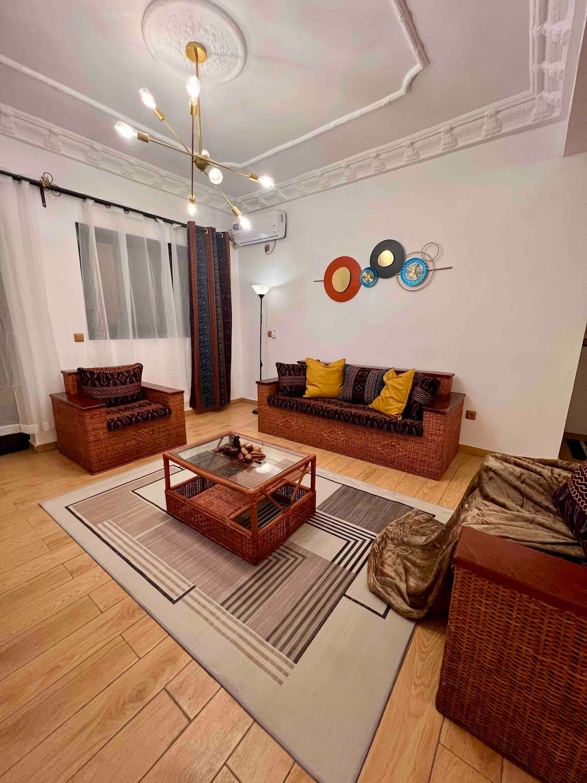 Es un apartamento de alto standing. -1 salón comedor -2 habitaciones equipadas con ventilador moderno - cocina bien equipada -2 duchas con agua caliente - Dinero de seguridad -cables TV ( canal + )