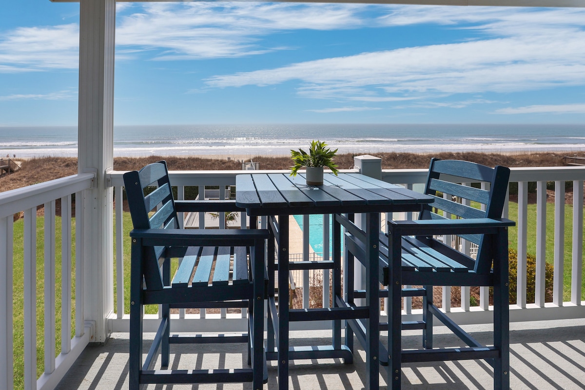 Apartamento frente al mar con entrada sin llave, increíbles vistas completas desde una espaciosa terraza con piscina y a solo unos pasos de la playa. Esta unidad bellamente decorada cuenta con una cocina totalmente equipada con una gran isla, barra de café, baños nuevos con toallas de lujo y camas listas para dormir con sábanas y edredones de algodón egipcio de primera calidad. Lavadora/secadora apilables, sala de estar con TV de pared de 60 pulgadas. Alquileres semanales de viernes a viernes en temporada de verano. Política estricta de no mascotas.