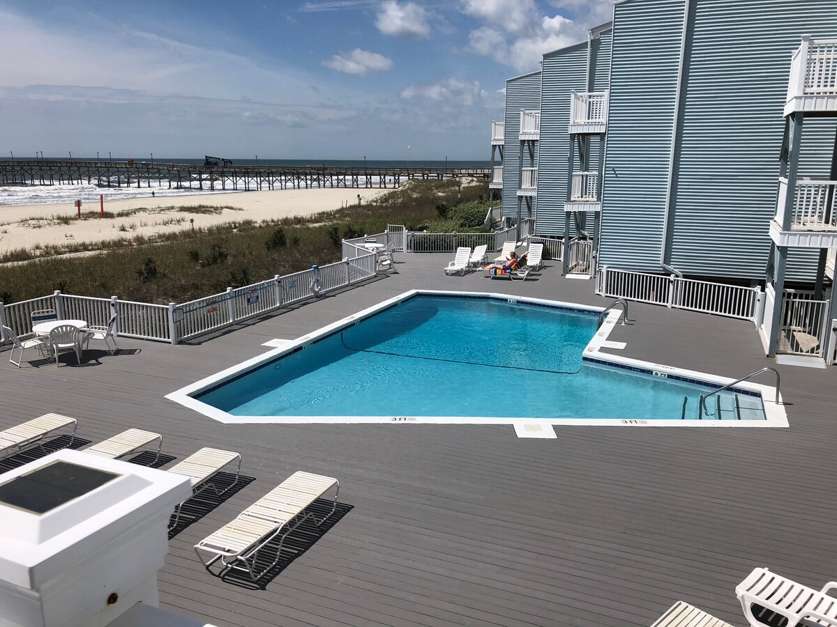 Este encantador CONDOMINIO FRENTE AL MAR se encuentra a poca distancia a pie de todo lo relacionado con la playa. ¡Restaurantes, muelle de pesca y un nuevo parque recreativo para todas las edades! La unidad se renovó recientemente. Se agrega un baño completo, con lo que la unidad pasa a tener 2 baños completos. 1 con tina. Dormitorio con cama queen, zona de literas con una cama matrimonial y una cama individual, sofá cama extraíble queen, cocina completa, sala de estar y comedor. Se proporcionará ropa de cama ¡Alquileres mensuales fuera de temporada disponibles!