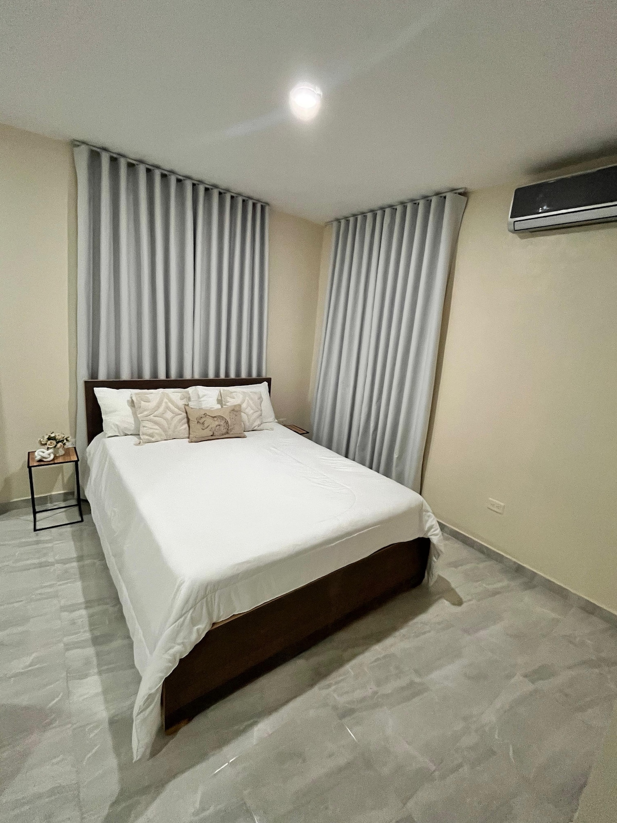 Grazioso appartamento a circa 1 km dal mare e dal centro storico di Puerto Plata con una bellissima vista sulla città e sulla montagna e mare . In zona riservata e silensiosa ad un passo da tutti i servizi supermercati, spiagge attrezzate ristoranti La casa dispone di parcheggio privato con cancello automatico e una bellissima piscina con sdraio e tavolino esterno . Fornita di tutti i comfort, cucina con isola , ampia sala con divano letto 2 camere 2 bagni con AC , zona di lavaggio e balcone