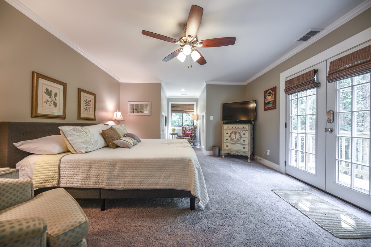 Suite de invitados única en la planta superior (entrada privada) en una casa de estilo artesanal en un hermoso entorno boscoso junto a un arroyo. Las tiendas y restaurantes del centro de Watkinsville están a pocos pasos. La ubicación se encuentra a menos de 6 millas de UGA, el estadio de Sanford y toda la diversión del fabuloso centro de Atenas. También estamos a solo 15 minutos del histórico Madison. Ya sean fines de semana de GameDay, fines de semana de padres, graduaciones, conferencias, escapadas, excursiones cercanas y viajes a la montaña, ¡esta es la opción perfecta!