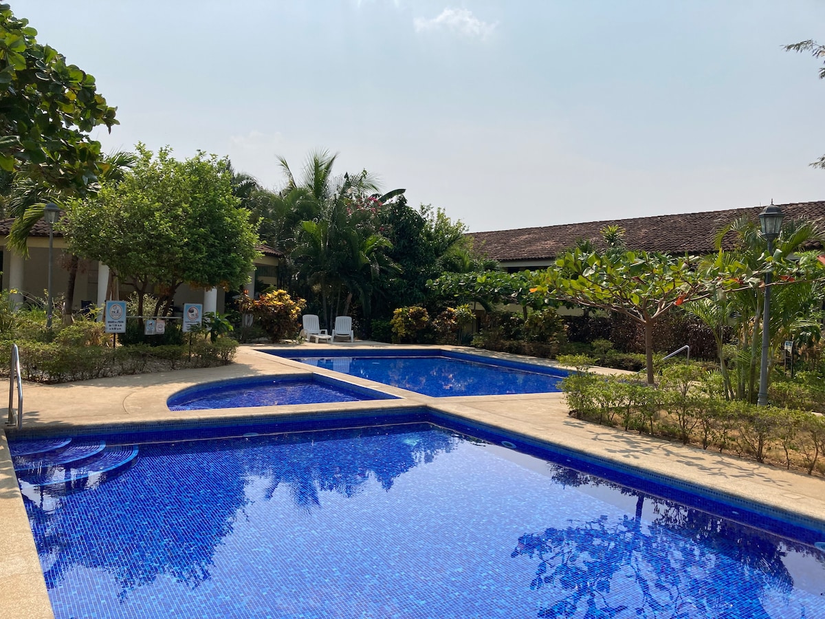 A cinco minutos a pie de la playa de Playa del Coco, a 30 minutos del aeropuerto. Este departamento en la planta baja está a pocos pasos de una gran piscina, canchas de tenis y pickleball, perfecto para familias o amigos que buscan equilibrar la relajación y la aventura. 2 dormitorios, 2 baños, cocina totalmente equipada y conserje de cortesía las 24 horas, los 7 días de la semana para ayudar a organizar excursiones, transporte, restaurantes o servicios en el hogar. Te encantará el acceso a la piscina y lo bien equipado que está el espacio. ¡Reserva ahora para disfrutar de una estadía especial llena de comodidad!