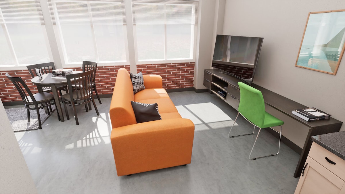 Descansa, recarga energías y diviértete en The Explorer: olvídate de los hoteles anticuados y mejora tu fin de semana de torneo. Ubicado a solo 2 minutos de Sports Force Parks y Cedar Point Sports Center, somos el alojamiento boutique más cercano a la acción. Espacio para todo el equipo Diseñada para familias que viajan, esta habitación cuenta con una litera doble personalizada y un sofá cama individual (capacidad para 5 personas). Olvídate de los diseños estrechos: solo colchones Executive premium y ropa de cama Home para una noche de sueño de campeonato. Los detalles Abastecimiento: Keurig en la habitación, mininevera retro y microondas. Tecnología: wifi de alta velocidad y televisor inteligente Samsung de 55”. Vibe: diseño moderno de los años 60 con artículos de tocador de calidad de spa. En el lugar: fogatas, parrillas de carbón, mesas de picnic, juegos de jardín y área de voleibol para practicar. A 5 minutos de Cedar Point. A 2 minutos de Sports Force y Sports Center. El campamento base perfecto para tu aventura en Sandusky.