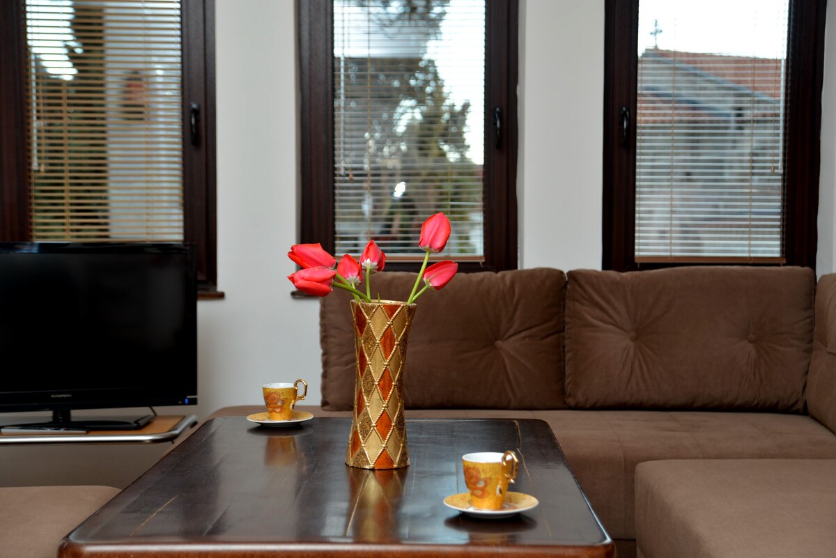Despiértate con las impresionantes vistas de la iglesia de Santa Sofía del siglo XI, en pleno casco antiguo de Ohrid. Este elegante apartamento totalmente equipado combina el encanto histórico con el confort moderno, ideal para viajeros que buscan cultura, tranquilidad y estilo a pocos pasos del lago.