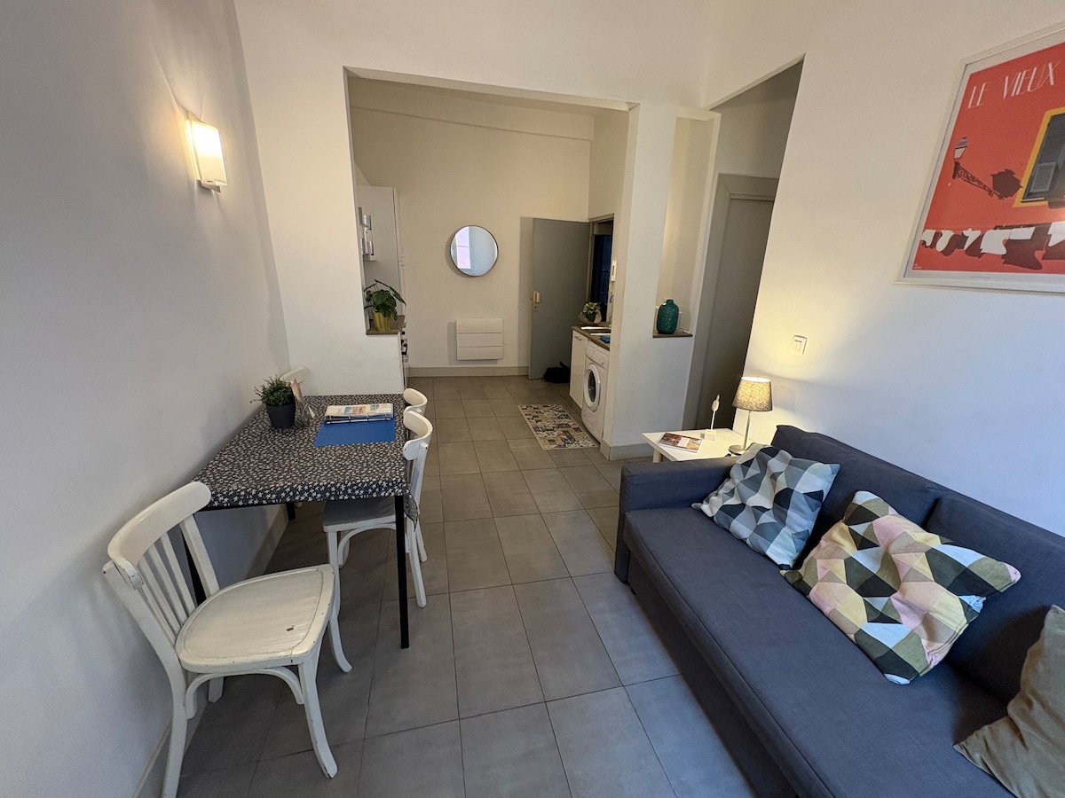 2 room apartment located 2 minutes from Nice Ville train station in the musicians' district. High floor, beautiful view. The apartment opens onto a terrace. Fully equipped, well placed, close to shops and amenities, this apartment is ideal for holidays but also for professional stays. Arrival at the apartment will be done independently with collection of keys from our partner 150 meters away more details 06@30@81@02@44