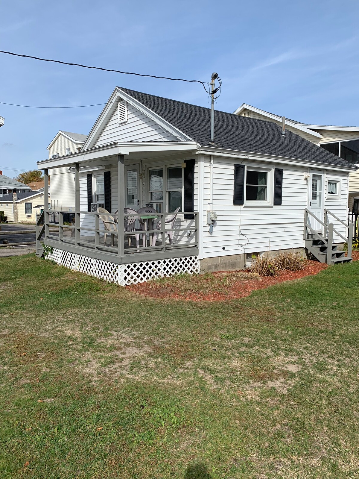 El anuncio es para la cabaña adjunta al lado derecho de la casa principal. Estamos ubicados en un lote de esquina y a 3 minutos a pie de 7 millas de playa de arena. El minigolf, el parque de atracciones y los conciertos están a pocos pasos. Nuestra casa está en un barrio menos concurrido. El estacionamiento está en el lugar en tu propio camino de entrada. Se proporciona una parrilla y una mesa de picnic.