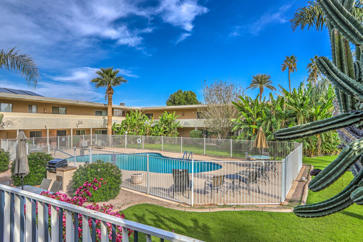 ¡Bienvenido al casco antiguo de Scottsdale, el paraíso de los viajeros! Te encantará este elegante y cómodo apartamento de un dormitorio con balcón con vistas a la piscina. Pasa tus mañanas en el balcón con una taza de café recién hecho y tus noches con una buena copa de vino. Perfectamente situado en una comunidad agradable en el casco antiguo de Scottsdale, con la posibilidad de ir caminando a tiendas, bares, entrenamiento de primavera, el Festival Culinario, el paseo marítimo de Scottsdale, boutiques, galerías, algunos de los restaurantes más populares de la ciudad y mucho más.