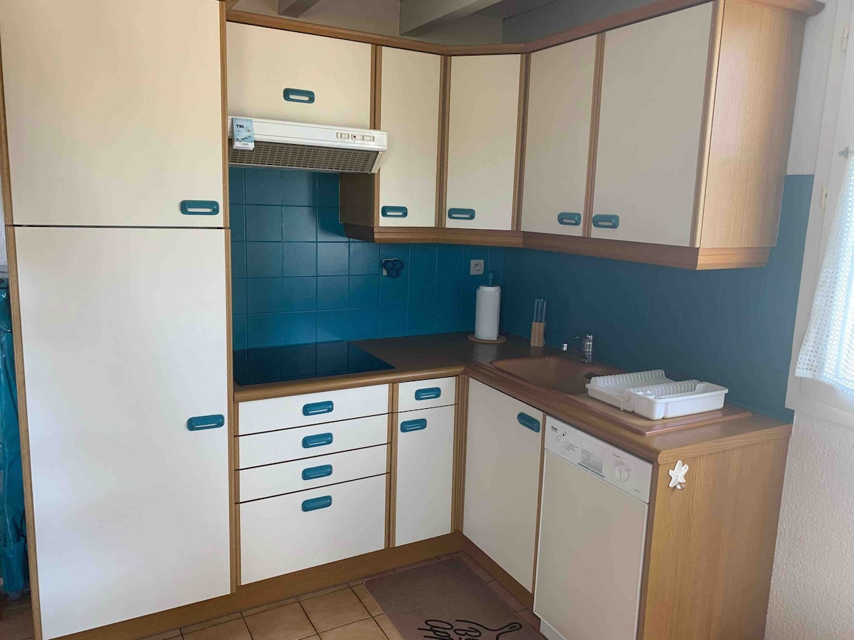 Coqueto apartamento en el corazón de la ciudad , en el seno de una residencia tranquila y a 200 metros del puerto y la playa. Ideal para una pareja. Cocina americana totalmente equipada, con cocina eléctrica a estrenar y horno, nevera,... bonita sala de estar luminosa, dormitorio aparte, cuarto de baño con ducha y WC. No se proporcionan sábanas ni toallas, pero hay una pequeña tienda de comestibles, paños de cocina, papel higiénico...