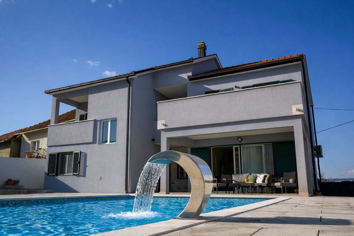 Te damos la bienvenida a Villa Blue: villa de lujo en Imotski, un oasis de bienestar que ofrece alojamiento con aire acondicionado, piscina privada, impresionantes vistas a la montaña y amplio balcón. Disfruta de la comodidad con acceso a una terraza, tenis de mesa, estacionamiento privado gratuito y wifi rápido. La villa también cuenta con un parque infantil y una sauna.