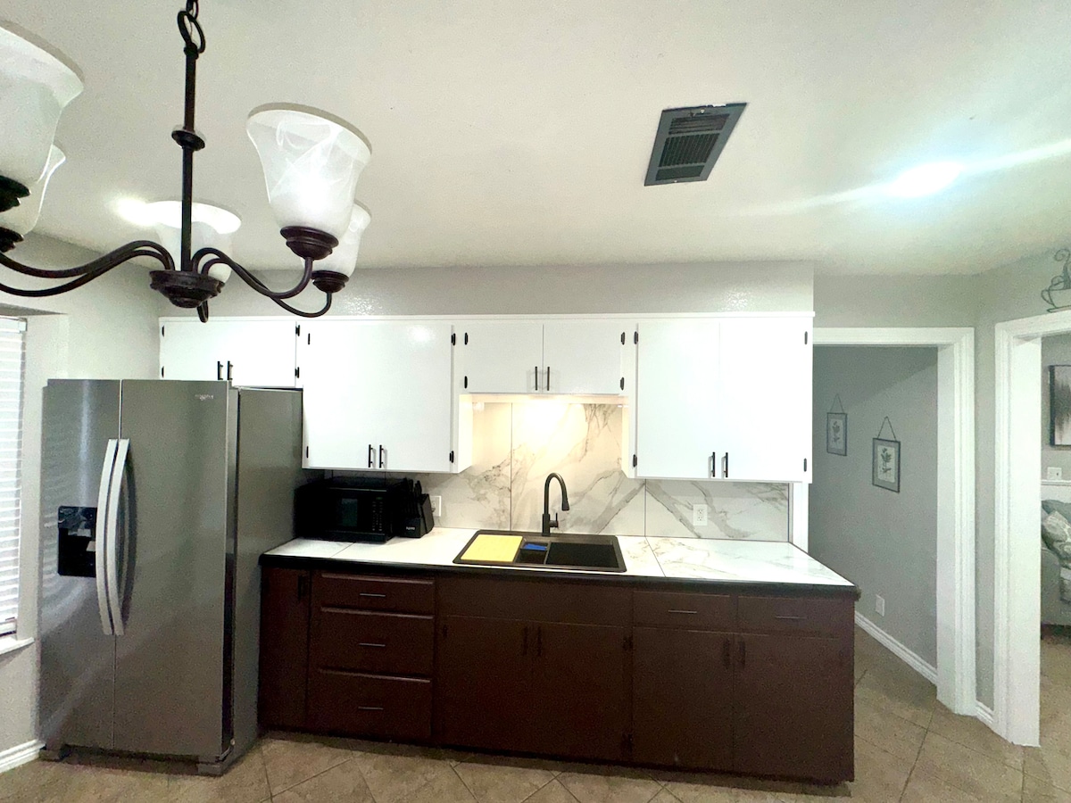 Welcome to your home away from home in Orange, TX! This cozy 3BR, 1BA house is just 5 minutes from the new Chevron project and Walmart. Enjoy a fully equipped kitchen, fast WiFi, Smart TV, and driveway parking. Located in a quiet neighborhood with easy access to dining, shopping, and highways. Ideal for workers, families, or long-term stays. Clean, comfortable, and move-in ready—book now with Halo Realty!