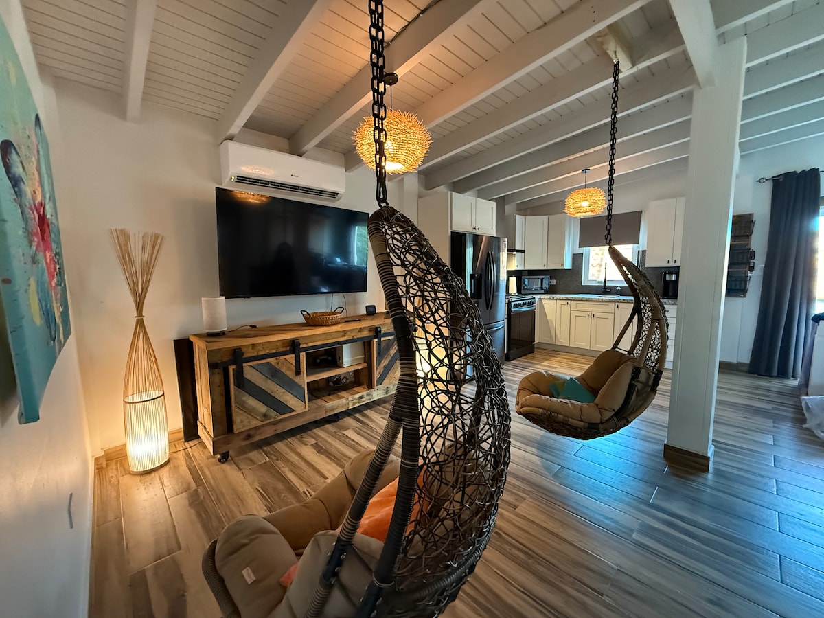 Pon los pies en alto y disfruta de tu estancia en este apartamento tipo estudio recién construido en Harbour House, ubicado en el corazón del centro de Aruba. Siéntete descansado con nuestro colchón tamaño queen Casper. Nuestro colchón Casper es una cama de espuma viscoelástica transpirable de 12 pulgadas, con firmeza media y soporte tonificado para mayor comodidad. Despiértate con vistas al centro de Aruba desde esta unidad con ventana de esquina o aventúrate en la azotea con vistas panorámicas de Aruba.