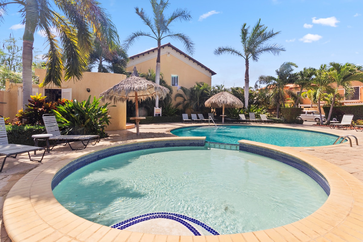 Somos 🌴SEA STAR ARUBA🌵 Relájate en este moderno complejo de apartamentos ubicado a 5 minutos en coche de las playas, restaurantes y centros vacacionales. Disfruta de nuestra soleada área de Piscina, camas y sillas para tomar el sol, Bañera con Hidromasaje y zona de Barbacoa, Todo decorado con flores y palmeras donde te sentirás en un paraíso tropical. Una vez que hayas terminado de hacer turismo, Retírese al encantador estudio que será tu hogar caribeño cuyo diseño acogedor le dejará asombrado.