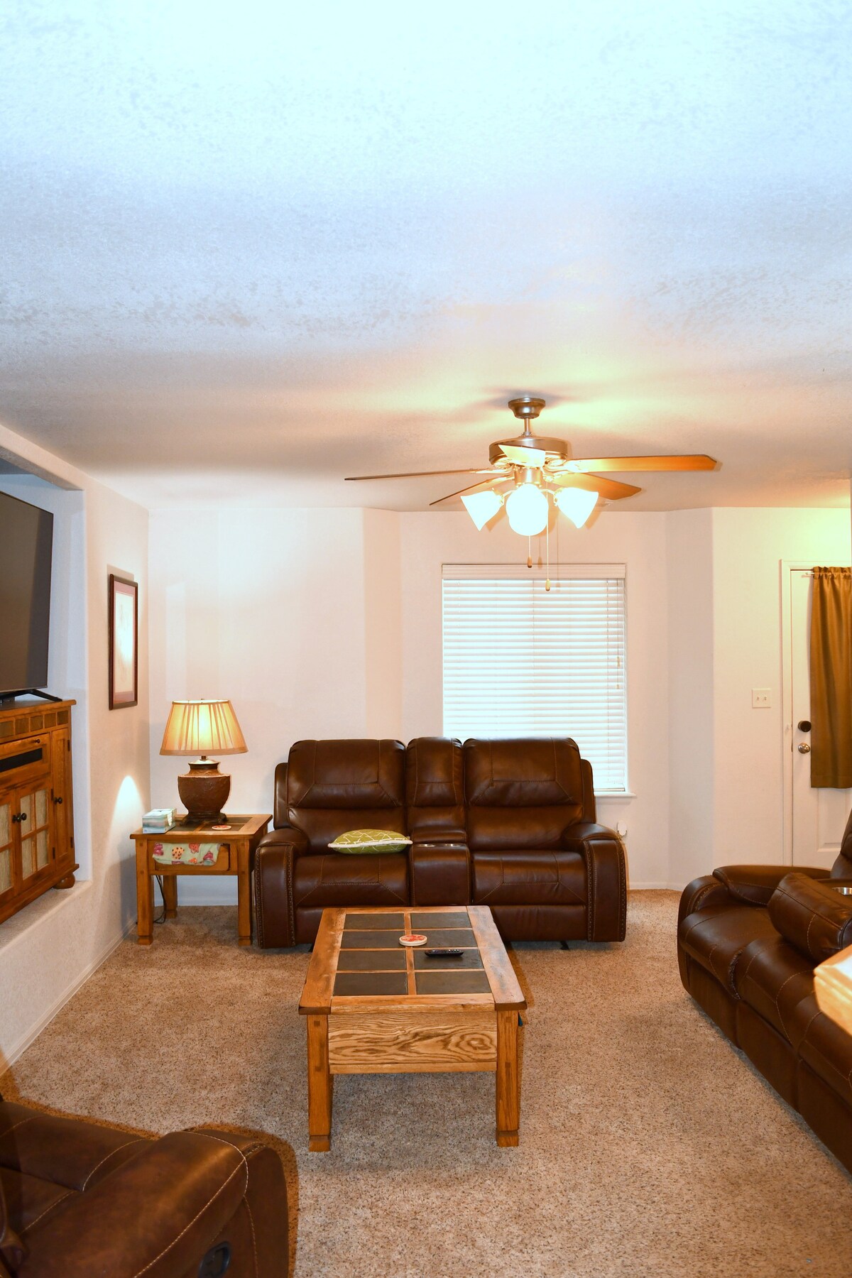 Tu hogar lejos de casa La casa de campo Apple Kor es una casa unifamiliar enclavada en la pequeña ciudad de Cedaredge, Colorado. Situada en la base de la Gran Mesa, cuenta con 3 dormitorios y 1,5 baños, con un gran patio cubierto para relajarse y disfrutar de la chimenea durante las frescas noches de Colorado. La casa, que admite mascotas, tiene capacidad para 7 personas cómodamente e incluye una sala de juegos para juegos familiares y una noche de cartas o un buen juego de póquer para tu disfrute durante tu estancia. Tenemos mucho espacio de estacionamiento para tu barco o vehículo todoterreno.